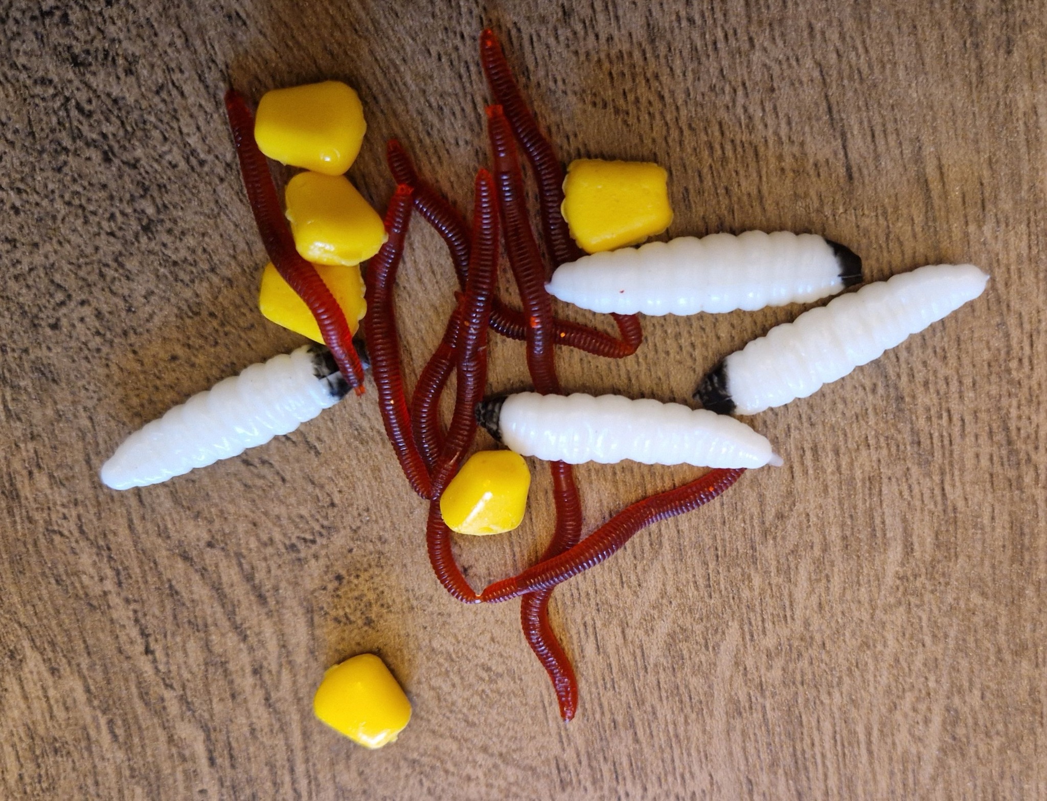 Předposlední novinkou bude možnost vyzkoušet různé umělé nástrahy ( kukuřice, tygří ořech, červi, žížaly…) naložené v esencích a esenciálních olejích, které perfektně fungují na krátkých vycházkách. Tyto nástrahy lze nastražit buď jednotlivě nebo v kombinaci s boilliem.